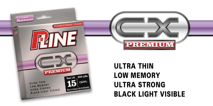 P-Line’s CX Premium Fluorocarbon Coated Line is one of the most innovative lines available, combining copolymer and fluorocarbon technologies. With low memory and improved limpness, CX Premium eliminates the line nightmares of a spinning reel, and improves casting distance with a baitcasting reel. The fluorocarbon-silicone coating virtually eliminates water absorption, so cold water and weather have little effect on line performance. With as much as 30% less stretch than average lines, it has increased sensitivity to detect and react to even the most subtle strikes. This great all-purpose premium line is available in clear fluorescent and moss green and hi-vis fluorescent green