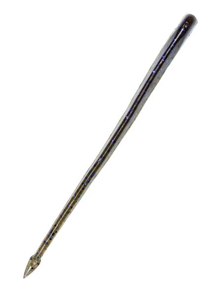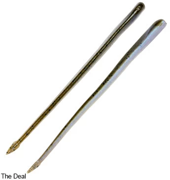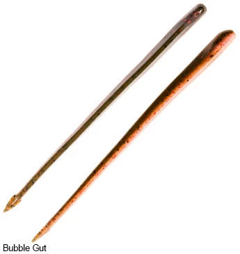 Super-soft, impossibly durable ElaZtech construction allows the 6-inch Long ShotZ to perform unlike any other dropshot bait available. A tapered nose is marked with a special hook exit spot for easy-nose hooking, but won’t tear like other finesse baits. Remarkably enticing movements and action is made possible by the Long ShotZ’s thin body, flat belly, wedge-shaped cross section and tiny spade tail. A 15-percent salt impregnation neutralizes some of the bait’s natural buoyancy for a more fluid, enticing action.